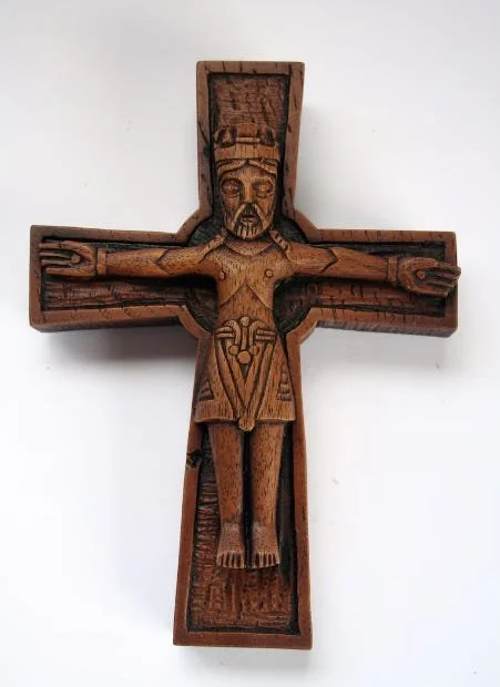 The below (brown resin crucifix) is often sold online (ebay, Etsy, etc.) as a replica of a crucifix said to be from Jutland, Denmark in the 11th century.